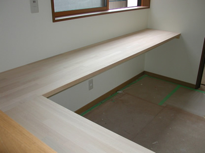 作り付けの机をコシャッテ(作って)もらいました。