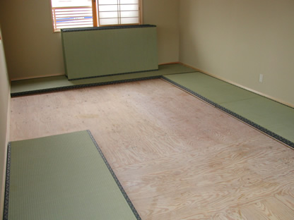 クリーニングの終わった二階の和室、いよいよ畳が敷かれます。