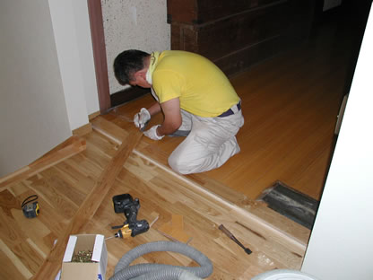 二階廊下の結合部分、少し段差があったので微調整を!!