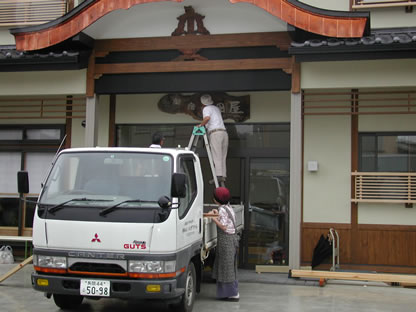 昔の看板を利用する為、玄関先のスペースに設置しました。