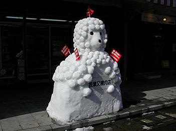 ![]() 毎年、同じ場所に出現する雪だるま 時代に捕らわれない雪像を考えるのは気の良い社長さん? |